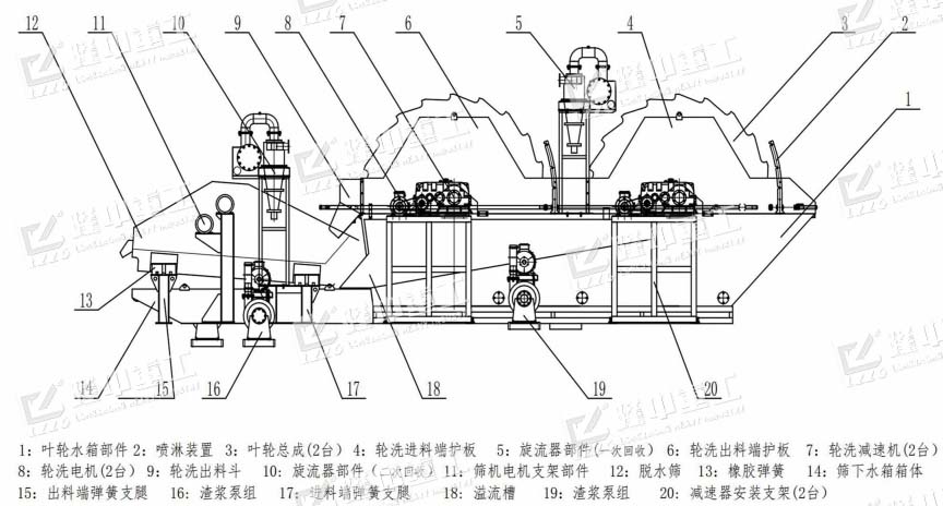 1、雙重水洗:物料經過兩次洗沙輪的清洗,清洗凈度高,使物料更加干凈。